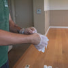 Schuur geleidelijk tot een glad, egaal oppervlak en verwijder al het stof. Zorg dat het hout schoon, droog en eventueel behandeld is met gewenste voorbereidende producten.