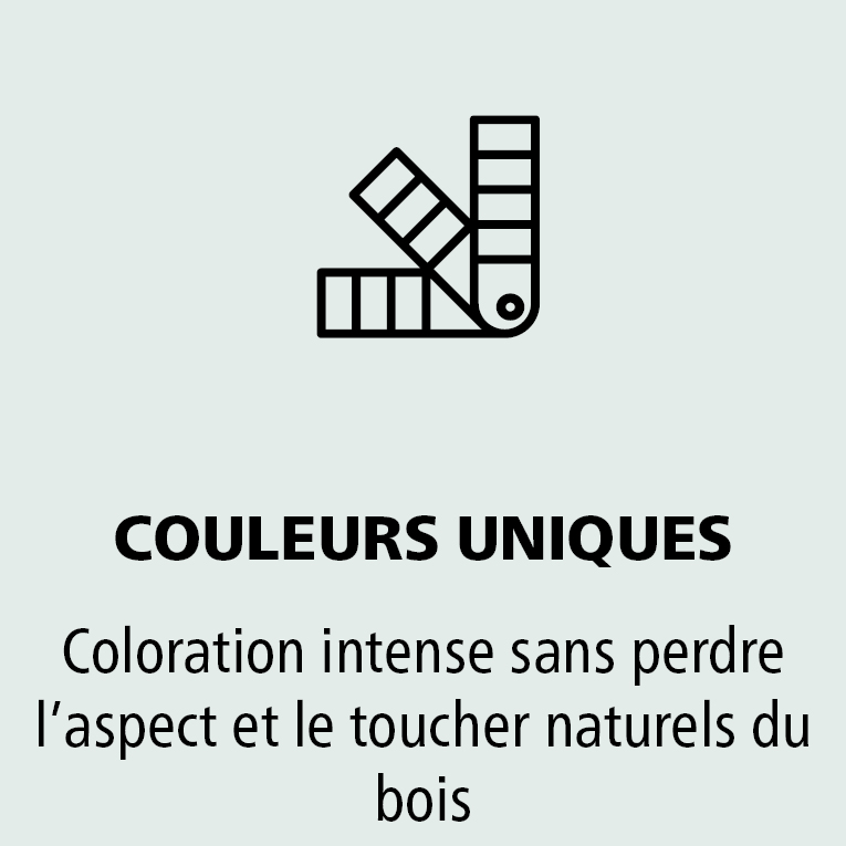 Choisissez parmi plus de 40 couleurs qui préservent l’aspect du grain du bois