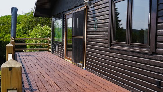 - Travaillez dans le sens du bois et couvrez les planches de la terrasse ou du revêtement sur toute la longueur, c.-à-d. de haut en bas pour les planches installées verticalement et de gauche à droite (ou vice versa) pour les planches installées horizontalement.