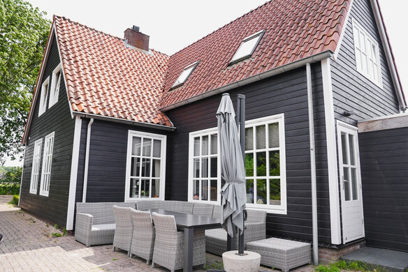 Cette maison confortable est complète grâce à sa belle façade noire. Le bois de Douglas a été traité avec notre WoodCream dans la couleur Bold Black #7, ce qui lui confère non seulement une couleur profonde, mais aussi une protection de qualité !