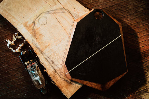 Cette planche de service, traitée avec notre Oil Plus 2C, est maintenant conforme au contact alimentaire et prête à l'emploi ! Pour obtenir la couleur noire profonde sur l'une des faces, une combinaison de notre Precolor Easy en Intense Black et de notre Oil Plus 2C en Black a été utilisée.