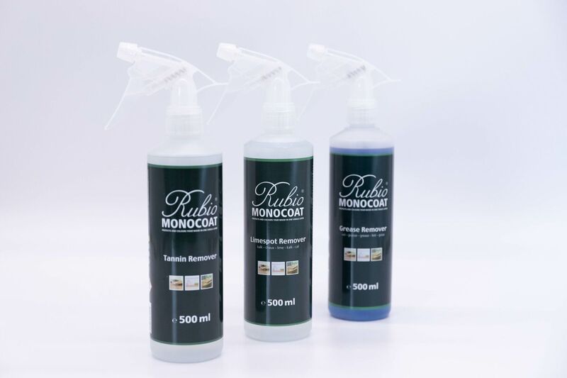 Een betere oplossing is de Rubio Monocoat Tannin Remover. Dit product werd speciaal ontwikkeld om zwarte vlekken of kringen te verwijderen uit je houten meubelen en vloeren die behandeld zijn met onze Rubio Monocoat oliën.