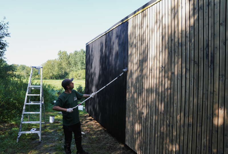 - Saddle Black is onze donkerste tint, net zoals WoodCream in de kleur Bold Black. Het geeft die geoliede look zonder de natuurlijke schoonheid van het hout weg te nemen. Je gevelbekleding, schuren en pergola’s hebben een zwarte tint, maar de natuurlijke nerfstructuur blijft zichtbaar. We zijn dol op deze look voor moderne buitenomgevingen met een donkere toets!