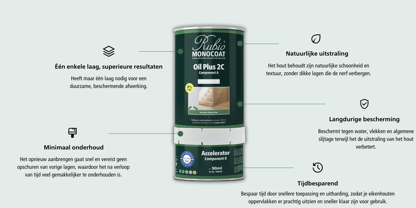 Duurzaamheid: Biedt uitstekende bescherming tegen vocht, vlekken en slijtage zonder het uiterlijk van het hout te veranderen.