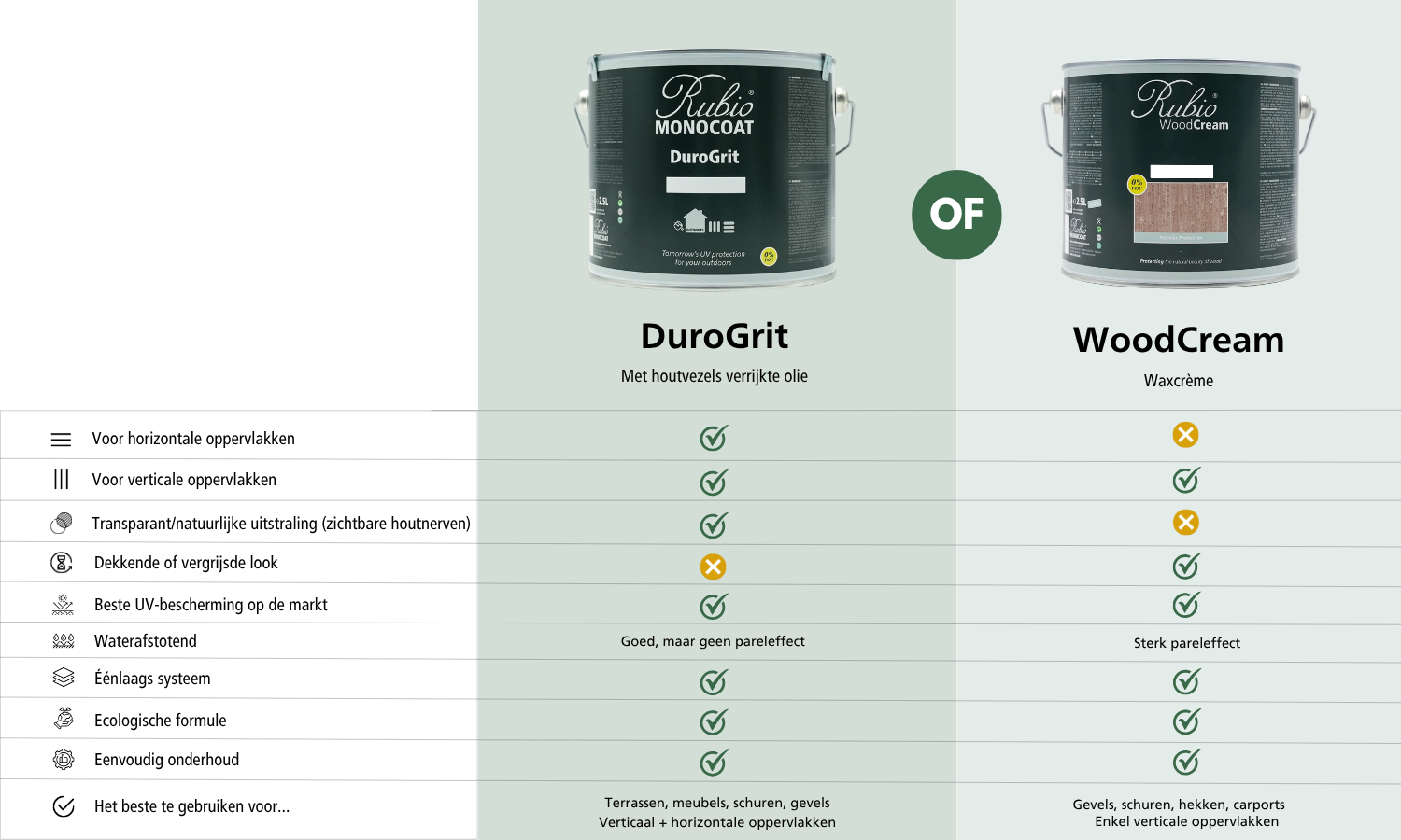 - Elke 2 jaar opnieuw aanbrengen op horizontale oppervlakken (bijv. vlonders, tuintafels etc.)