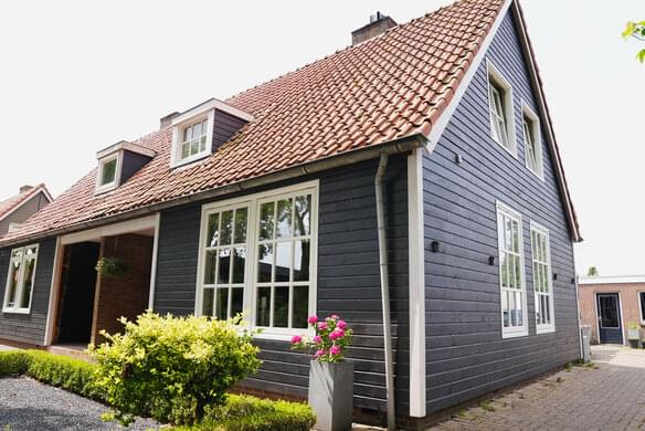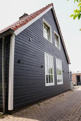 Dit gezellige huis is helemaal af dankzij de mooie zwarte gevel. Het douglashout werd behandeld met onze WoodCream in de kleur Bold Black #7 en kreeg zo niet alleen een diepe kleur, maar ook een kwalitatieve bescherming!