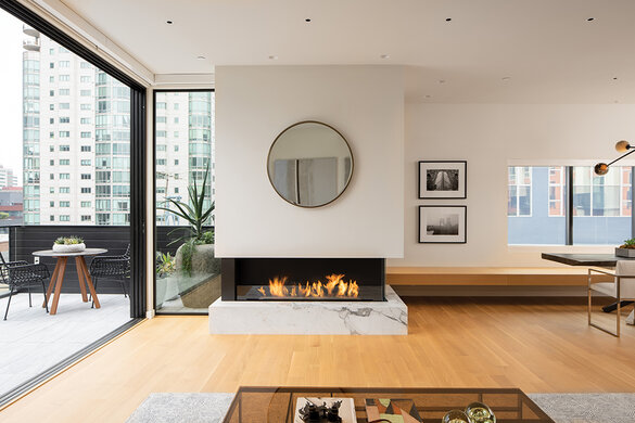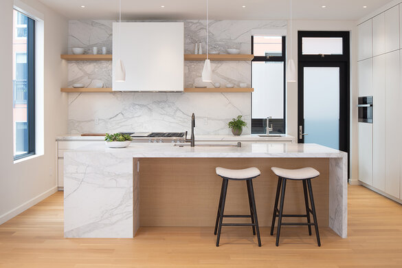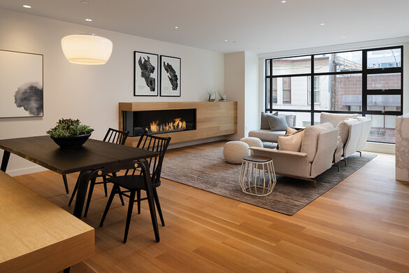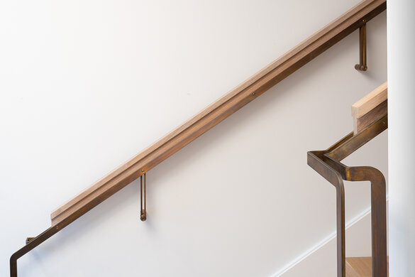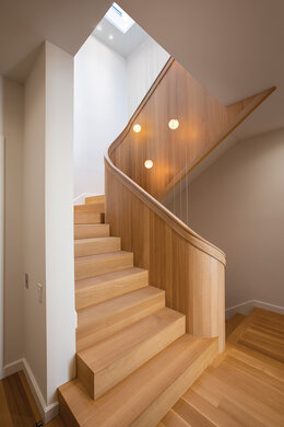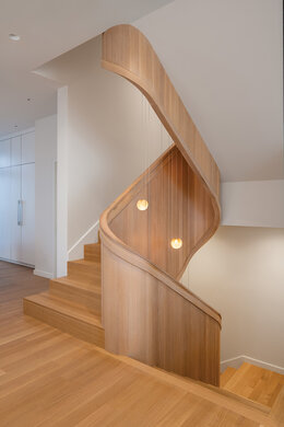Deze natuurlijke en rustige look werd gecreëerd door True Fabrication. Ze gebruikten onze Rubio Monocoat Oil Plus 2C in de kleur Natural om de houten vloeren en de prachtige trap een matte uitstraling te geven. De vloeren, leuningen en draaitrap zijn gemaakt van 100% rift gezaagd witte eik.